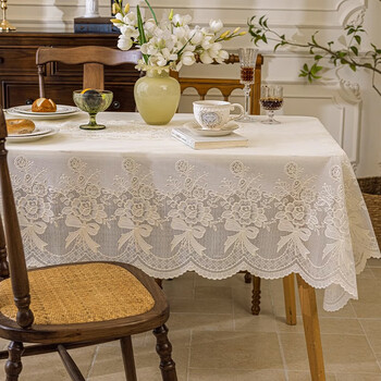 艾薇桌布防水防尘椭圆形pvc蕾丝餐桌布茶几台布90*150倾城牡丹