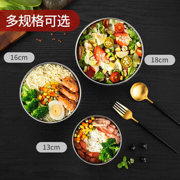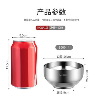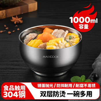 美厨(maxcook)304不锈钢碗 汤碗双层隔热餐具面碗16CM MCWA107