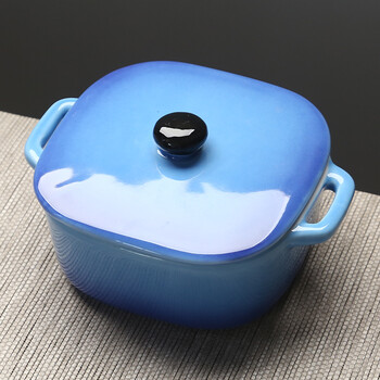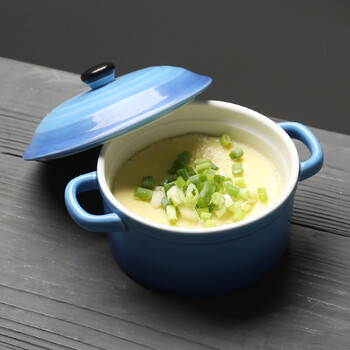苏氏陶瓷双耳带盖燕窝汤盅炖罐蒸蛋陶瓷一方一圆2个装深蓝350毫升