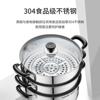 苏泊尔SUPOR 蒸锅真味鲜304不锈钢三层复底26cm蒸鱼锅汤锅蒸笼EZ26BS10