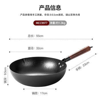美厨(maxcook)精铁炒锅铁锅32cm 鱼鳞纹炒锅 燃气电磁炉通用 无涂层 MCC9977