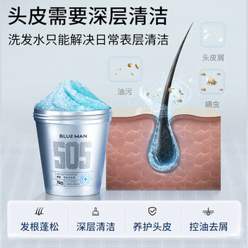 尊蓝海盐洗头膏男士250g 控油蓬松头皮磨砂膏头发去屑止痒除螨洗发水