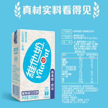 维他奶燕麦奶植物蛋白饮料250ml*24盒 咖啡伴侣 早餐燕麦奶 开学季