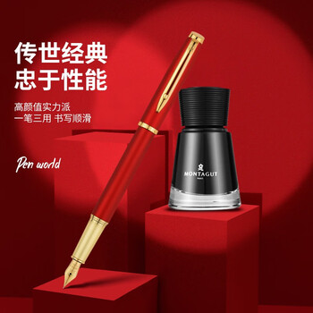 梦特娇(MONTAGUT)【马年礼物】钢笔特细笔签字笔男女款办公高档礼盒套装睿智系列2007-1金属红