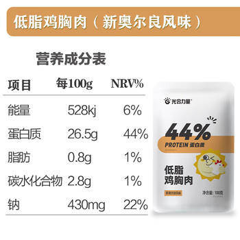 光合力量 新奥尔良风味鸡胸肉500g即食高蛋白低脂健身轻食鸡胸脯100g*5袋