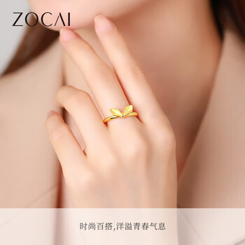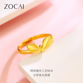 佐卡伊黄金戒指女足金兔耳朵兔子金戒指可爱生日礼物送女友礼物