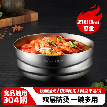 美厨(MAXCOOK)304不锈钢碗 大汤碗双层隔热 餐具面碗22CM MCWA106