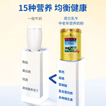 荷兰乳牛中老年营养配方奶粉800g听 富硒高钙 老年人营养品送长辈