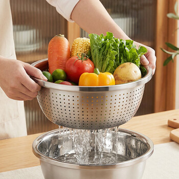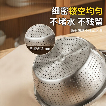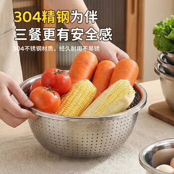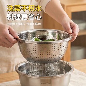 美厨(MAXCOOK)米筛菜盆304不锈钢 加厚加大沥水盆淘米洗菜洗水果盆26cm MCWA859