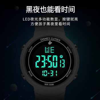 迪士尼(Disney)学生手表女初高中简约时尚防水电子表多功能运动手表开学备用表带