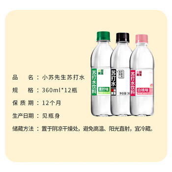 小苏先生 弱碱性无汽青柠味苏打水 零糖零热量户外出游饮料360ml*24瓶
