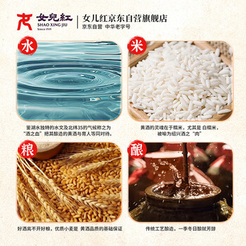 女兒红陈年老酒二年 半干型 绍兴黄酒 2.5L*6桶 整箱装 可作料酒