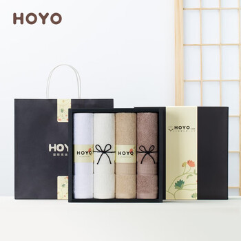 HOYO日本长绒棉A类纯棉荷花毛巾礼盒4条装柔软吸水家用公司团购定制
