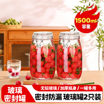 美厨(maxcook)玻璃密封罐 储物瓶泡酒瓶泡腊八蒜 玻璃瓶子1500ml 2个装 MCX1109
