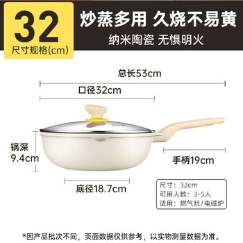 炊大皇炒锅 麦饭石色聚油不粘锅多功能少油烟炒菜锅平底32cm 电磁炉通用