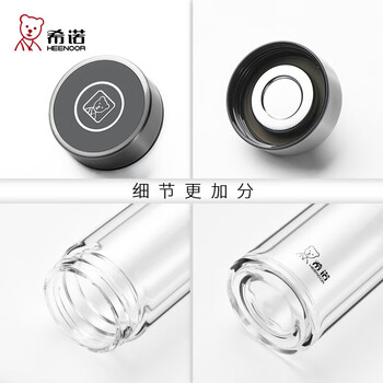 希诺双层玻璃杯男家用商务办公泡茶杯子大容量车载水杯XN-6596 410mL