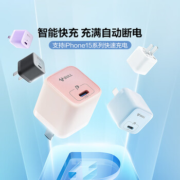 公牛PD20W充电器 苹果16快充头 充满自动断电 适用于iPhone15/14/13promax/12/11/x/8 棉糖粉