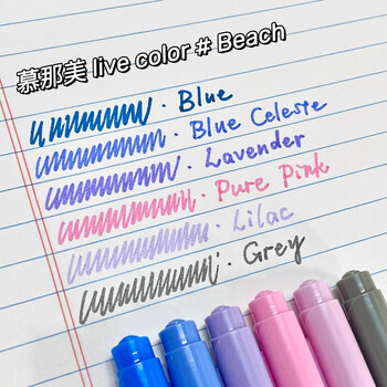 慕那美(monami)双头水性纤维笔学生涂鸦手绘笔彩绘水彩笔手账勾线笔6色套装Beach04035Z06-B水彩笔