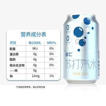 名仁 苏打汽水 经典原味 0糖0脂0卡 气泡饮料 330ml*24罐 整箱装