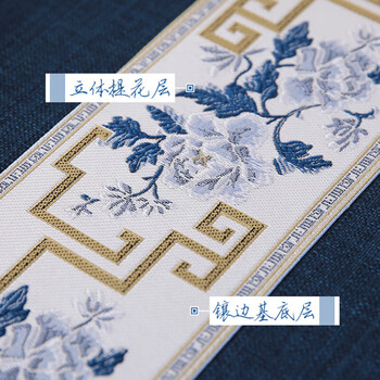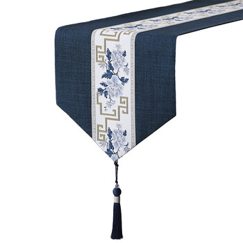 艾薇 桌旗中式桌布茶几布长条茶席茶台布艺餐桌垫33*180国色芳华蓝色
