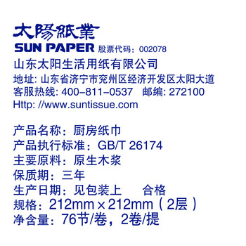 幸福阳光厨房用纸 76节*8卷 卷筒式吸水吸油纸 加厚厨房纸巾