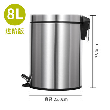 欧润哲垃圾桶脚踏带盖8L不锈钢客厅卧室厨房卫生间家用内外双桶缓降静音