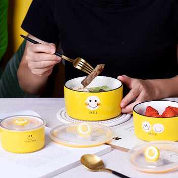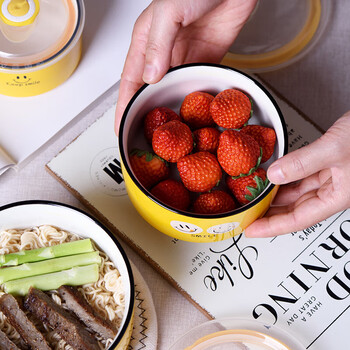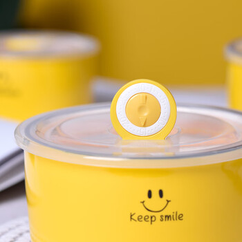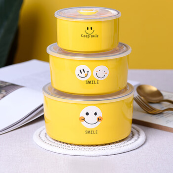 裕行带盖保鲜碗密封三件套微波炉可用笑脸保鲜盒饭碗