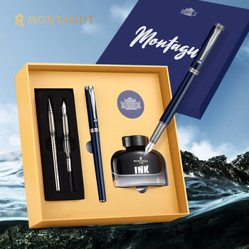 梦特娇(MONTAGUT)钢笔学生书法练字钢笔美工笔宝珠笔礼品墨水礼盒优越三合一系列幽蓝色