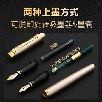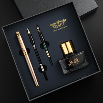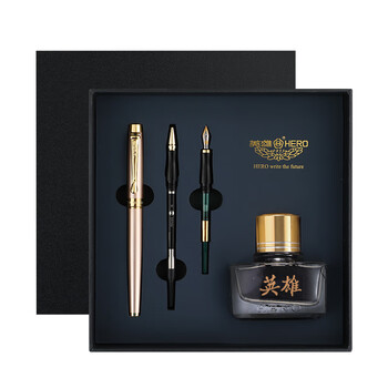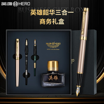英雄(HERO) 钢笔 【韶华系列】铱金笔/宝珠笔/美工笔三合一礼品墨水套装 金粉