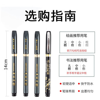 金万年大中小楷极细秀丽笔写书法练字专用笔钢笔式书法笔软毛笔练字软硬笔 黑色 4支 G-0938T