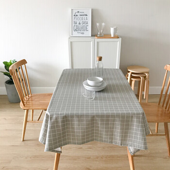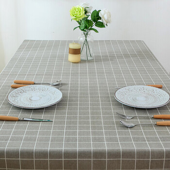 艾薇桌布布艺 防水棉麻餐桌布茶几垫台布长方形书桌垫100*140灰格子