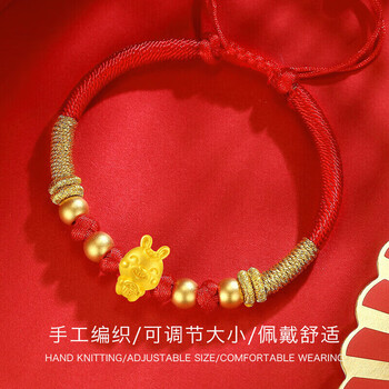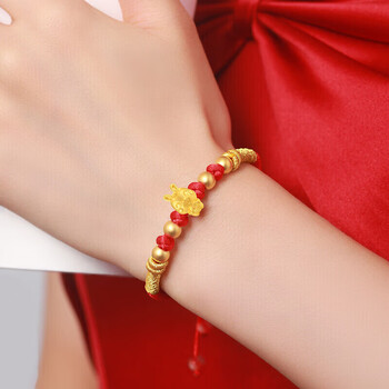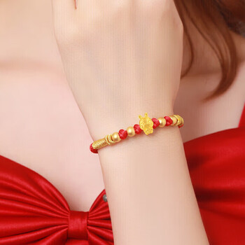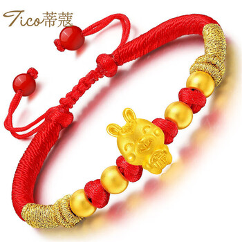 蒂蔻(Tico)生日礼物本命年生肖兔足金福兔3D硬金古法金珠黄金转运珠手链女