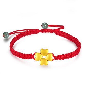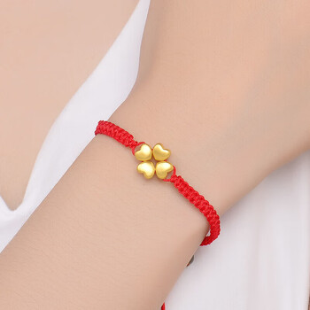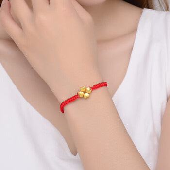 蒂蔻(Tico)幸运四叶草爱心形黄金转运珠手链女3D硬足金红绳手饰生日礼物