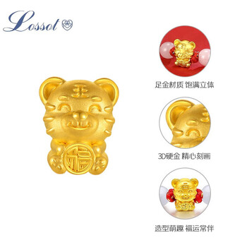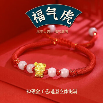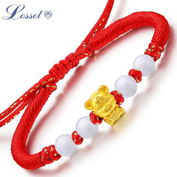 Lossot生日礼物足金福虎黄金转运珠手链虎年生肖红绳本命年手链3D金虎