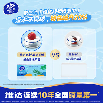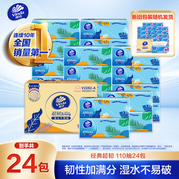 维达(Vinda)抽纸 超韧3层110抽*24包S码 湿水不易破 卫生纸面巾纸 新旧随机发