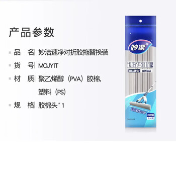 妙洁胶棉拖把头33cm共1头对折式速净对折胶拖替换装30S速软海绵