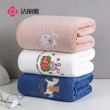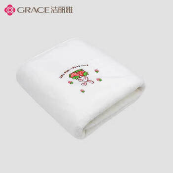 洁丽雅(Grace)浴巾女夏天吸水速干家用加大吸水男洗澡大人裹巾草莓小兔70*140cm