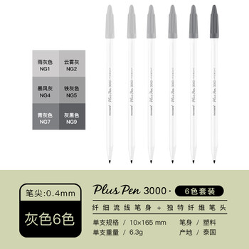 慕那美(monami)新P3000纤维笔水性笔彩色中性笔套装水彩笔勾线笔手帐笔灰色系6色04009Z06-P水彩笔