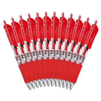 晨光 按动中性笔0.5黑水笔签字笔碳素学生用考试文具用品水性笔 红色 12支装
