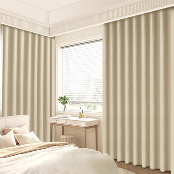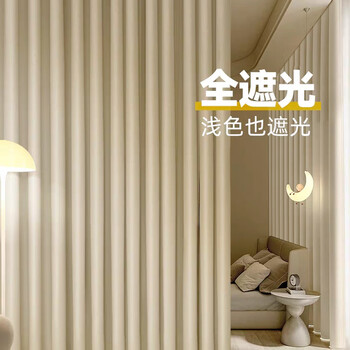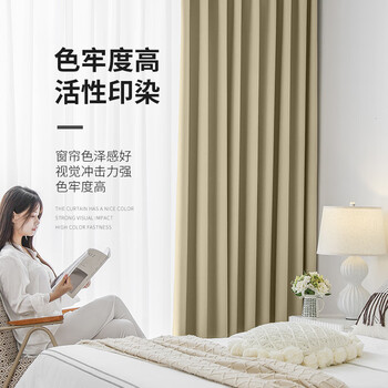 铭聚布艺(MINGJU)窗帘 全遮光窗帘成品窗帘布遮阳帘涤塔夫奶油色挂钩式2.0*2.0单片