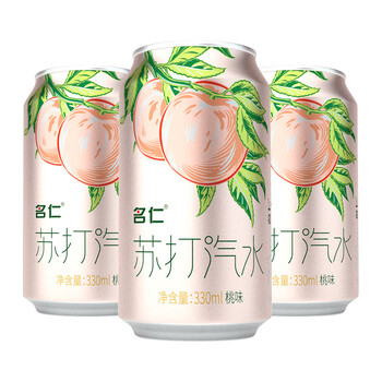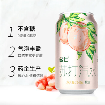 名仁苏打汽水0糖0脂0卡桃味气泡水饮料330ml×24罐整箱装