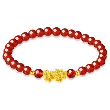 蒂蔻(Tico)足金招财貔貅黄金转运珠手链女红玛瑙手串3D硬金饰品生日礼物