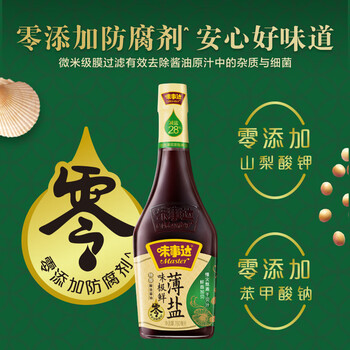味事达 味极鲜系列 薄盐味极鲜760ml【减盐 特级酱油】零添加防腐剂生抽