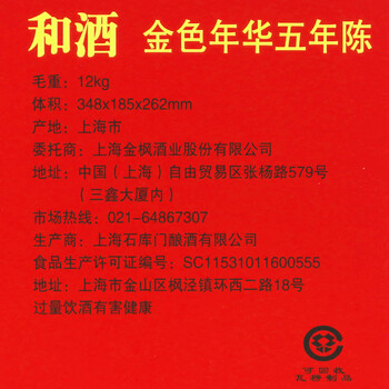 和酒 五年陈 金色年华500ml*1瓶