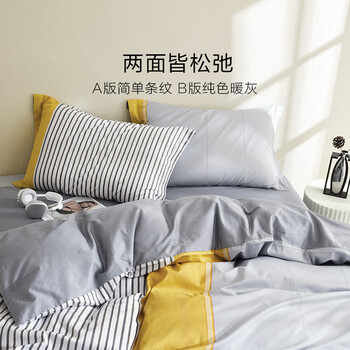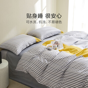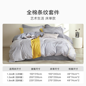 罗莱家纺 纯棉床上四件套床上用品套件被单被罩 黄 220*250
