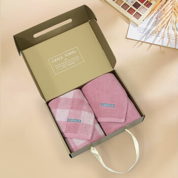 洁丽雅(Grace)尚雅生活纯棉绣花洗脸巾吸水加厚面巾毛巾礼盒两条装红