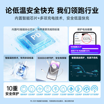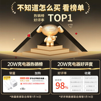 罗马仕 20W氮化镓充电头*1,苹果PD20W快充数据线1米*1,说明书*1