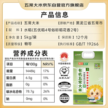 五常大米官方溯源 葵花阳光 特等五常大米 10斤 原粮稻花香2号 有机 新米