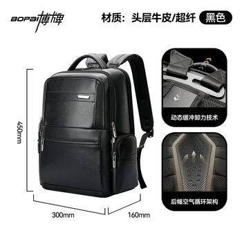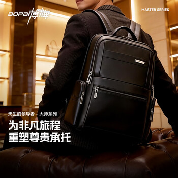博牌大师系列双肩包头层牛皮商务背包男士16英寸电脑包真皮