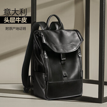 BVP真皮双肩包男头层牛皮背包潮男轻奢大容量商务电脑包生日礼物